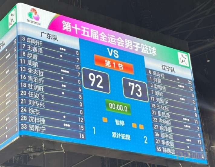 全運(yùn)男籃半決賽,廣東全運(yùn)男籃對(duì)陣遼寧全運(yùn)男籃。比賽開始,雙方開場(chǎng)勢(shì)均力敵,比分交替領(lǐng)先,隨后趙繼偉傷退,趙睿連中三分引領(lǐng)球隊(duì)16-2的攻擊波取得兩位數(shù)領(lǐng)先,次節(jié)廣東命中率下降,高詩(shī)巖和鄢手騏先后命中三分帶隊(duì)追趕,徐杰三分穩(wěn)住局勢(shì),半場(chǎng)戰(zhàn)罷廣東全運(yùn)男籃45-37領(lǐng)先遼寧全運(yùn)男籃。易邊再戰(zhàn),遼寧占得先機(jī)打出6-0追到只差2分,周鵬三分穩(wěn)住局勢(shì),廣東全運(yùn)男籃持續(xù)發(fā)力打出10-0的攻擊波重獲兩位數(shù)優(yōu)勢(shì),末節(jié)廣東全運(yùn)男籃越戰(zhàn)越勇,一舉將分差拉開到20分以上,比賽失去懸念。最終,廣東全運(yùn)男籃92-73大勝遼寧全運(yùn)男籃,挺進(jìn)決賽。
