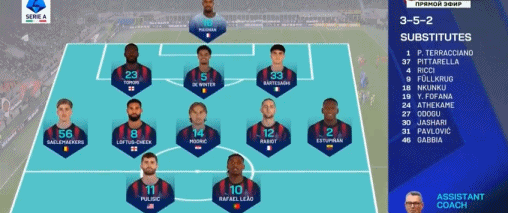 米蘭臨時換人,德溫特頂替加比亞登場